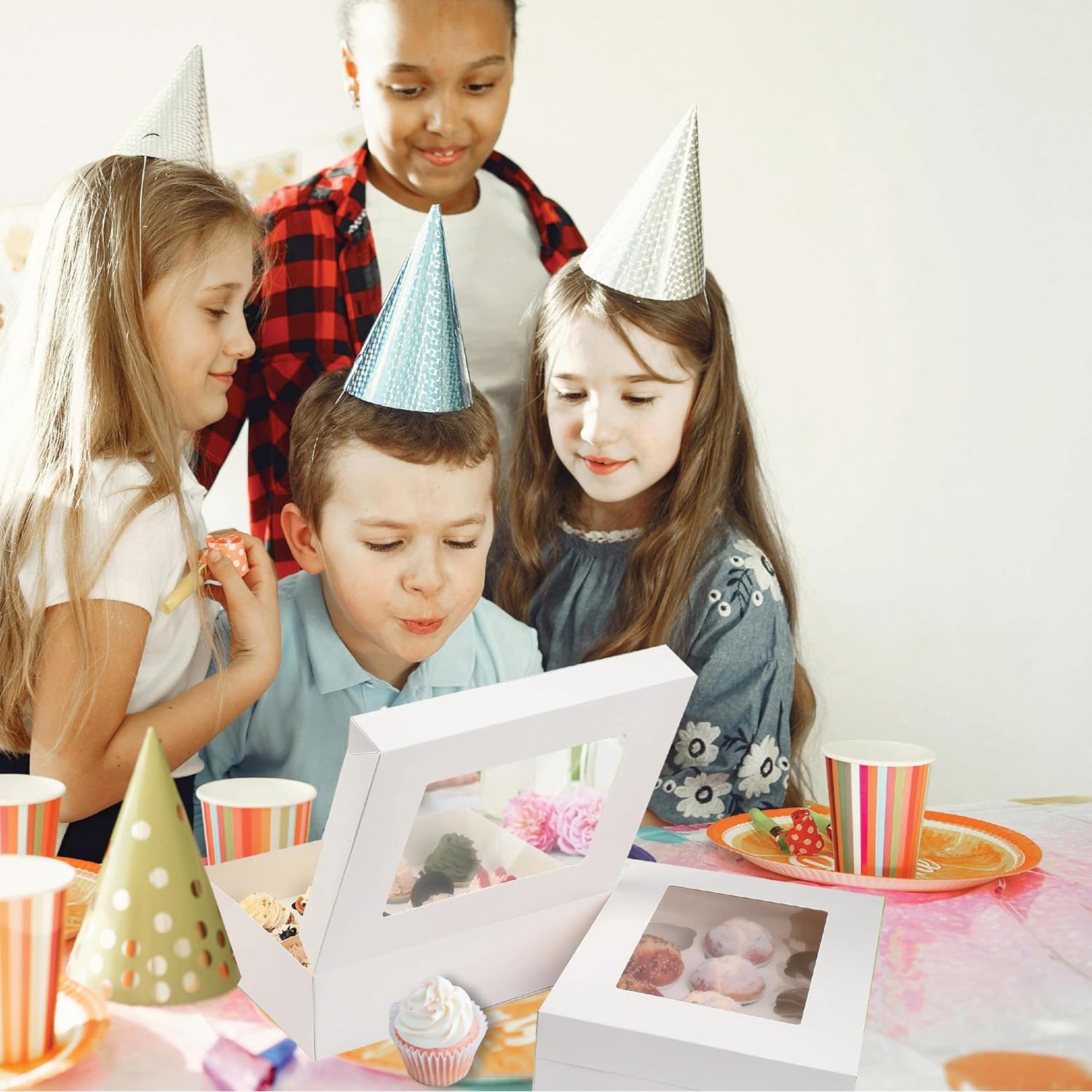 - Each set includes 10 durable cupcake boxes, capable of holding 12 cupcakes each. 10 reliable cupcake holders. 12 charming thank you stickers.